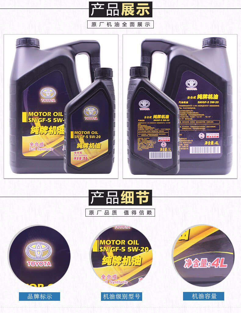 丰田纯牌0W20皇冠锐志RAV4凯美瑞卡罗拉雷凌SN级4L全合成机油