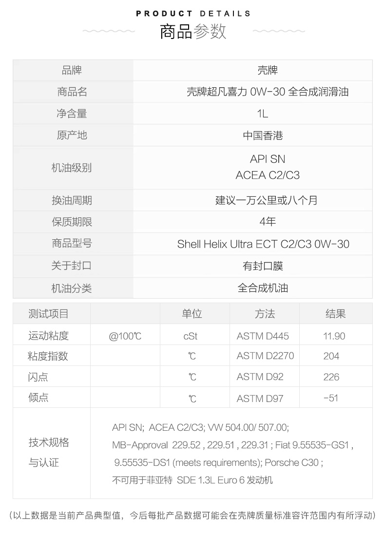 粘度级别:0w-30